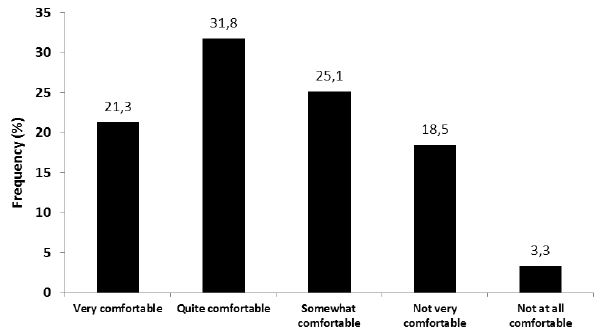 With the use of mobile apps for staff training in mind, the respondents did in fact demonstrate a degree of comfort. Here, a total of 78.2% of those surveyed suggested that they were comfortable (i.e. very, quite or somewhat) in using mobile apps to facilitate staff training within the pharmacy. In a similar manner to the data presented above, a minority (21.8%) were not fully comfortable in using the technology to assist with staff training.