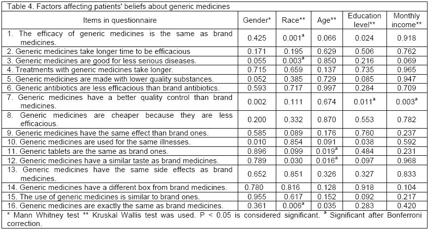 Factors affecting patients’ beliefs about generic medicines