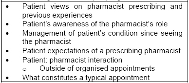 Results: Patients valued the increased accessibility to, and continuity of, their prescriber compared with their experience of other healthcare professionals. Patients reported they were able to trust the pharmacist’s knowledge of medication, were provided with sufficient information regarding reasons for treatment and side effects, and felt that they had an active role in decisions concerning their healthcare.