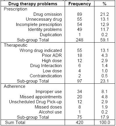 Drug therapy problems (DTPs) are harmful clinical events directly related to the use of medicines and may include under or overtreatment, inappropriate dosing, choice of formulation, drug interactions, poor adherence, and harm caused by adverse drug events.1,2 The burden of DTP on population health is enormous. As many as one in 10 patients are harmed while receiving hospital care in developed countries.3 In the United States for instance, the Center for Disesase Control (CDC) estimates that every day 44 people die from overdose of prescription painkillers.4 Although data is limited, the burden of DTP is likely to be much worse in low- and middle-income countries due to weak health systems and shortages of trained health care workers. The potential for DTP in HIV pharmacotherapy is high as a result of the chronic nature of the therapy and the use of combination therapy which increases the potential for drug interactions and adverse drug reactions. Other factors which contribute to DTP in HIV therapy are; the rapidly evolving therapeutic options and treatment guidelines, the need for additional counseling; and near perfect lifelong adherence requirement for ART.5