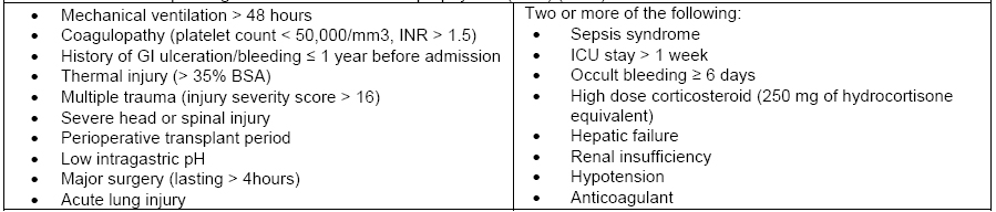 Another guideline for SUP was the Surviving Sepsis Campaign guideline, which recommends a H2RA or PPI to be given in patients with severe sepsis/septic shock who have bleeding risk factors, though no specific risk factors are listed. A PPI is preferred to a H2RA when SUP is indicated.14