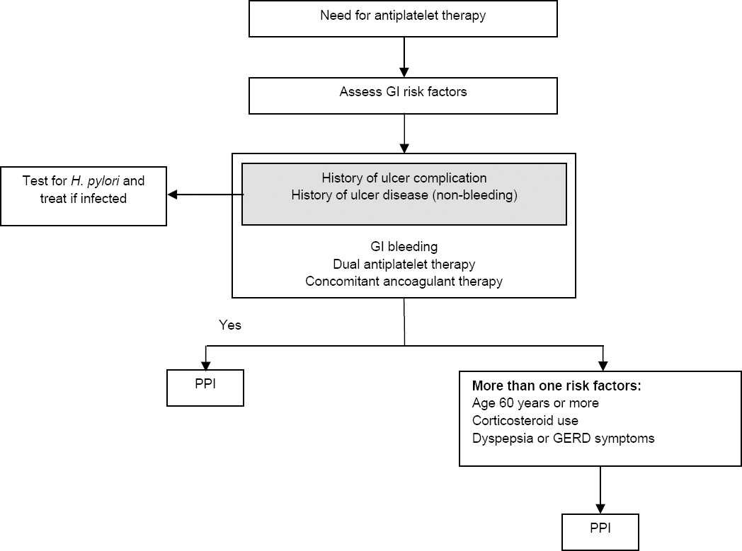 Bhatt DL, Scheiman J, Abraham NS, Antman EM, Chan FK, Furberg CD, Johnson DA, Mahaffey KW, Quigley EM; American College of Cardiology Foundation Task Force on Clinical Expert Consensus Documents. ACCF/ACG/AHA 2008 expert consensus document on reducing the gastrointestinal risks of antiplatelet therapy and NSAID use: a report of the American College of Cardiology Foundation Task Force on Clinical Expert Consensus Documents. Circulation. 2008;118(18):1894-1909. doi: 10.1161/CIRCULATIONAHA.108.191087