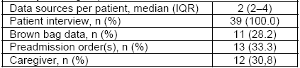 The mean time to perform MR was 40 (SD=17.2) minutes. In the evaluation of clinical data sources accessed to collect medication history, a median of two (2–4) sources were available for each patient, both for the total sample and groups. The main source of collected data was direct interview with the patient in MR group (Table 2).