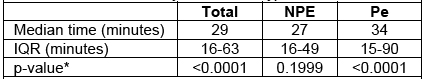 NPE vs. PE: The time needed to process NPE orders was significantly less than that needed for PE orders (median 27 vs. 34 minutes respectively; p=0.026).