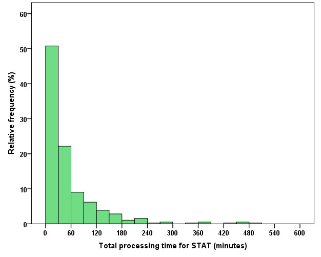 Nevertheless, the present study was conducted at a single hospital, and therefore the findings may not be generalizable to other hospitals. Another limitation of this study was the short period of this study. Despite these limitations, we have now an idea about some reasons associated with delay in STAT ordering process. In addition this study may give a model of analysis to be used for other hospital considering studying STAT ordering process.