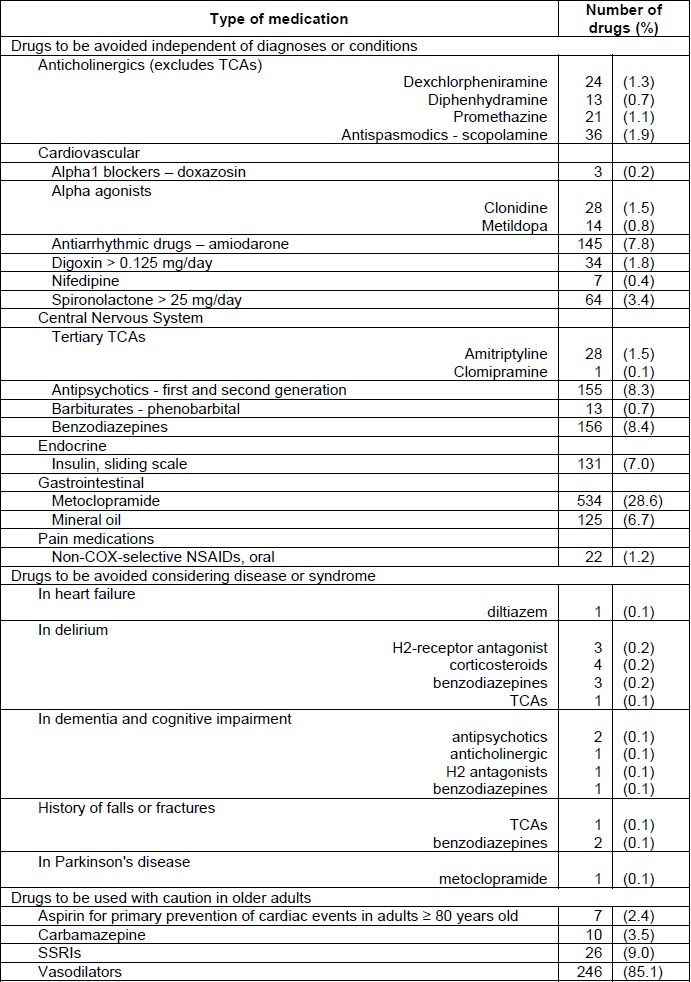 Faustino CG, Passarelli MC, Jacob-FIlho W. Potentially inappropriate medications among elderly Brazilian outpatients. Sao Paulo Med J. 2013;131(1):19-26.