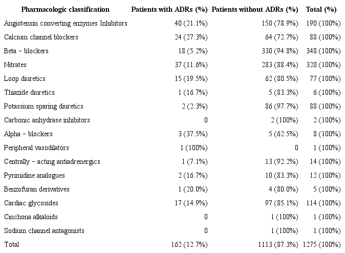 Conclusion: Monitoring ADRs in patients using cardiovascular drugs is a matter of importance since this class of medicines is usually used by elderly patients with critical conditions and underlying diseases.