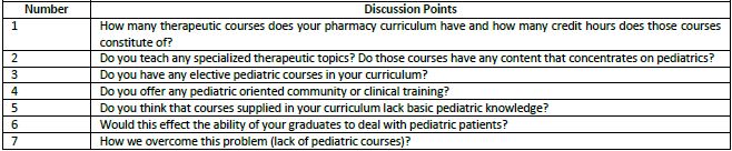Thus, the present study aims to explore faculty (i.e., professors of various ranks) opinions and views regarding the pediatric content courses taught to pharmacy students in Jordan, and about ways to increase pharmacy students’ experiences and knowledge regarding pharmaceutical care in pediatric patients.