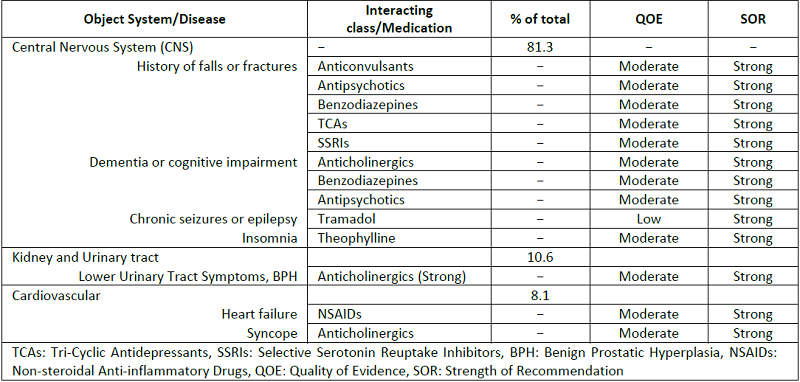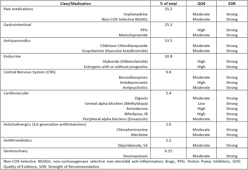 The quality of evidence (QOE) and strength of recommendation (SOR) for each encountered Beers PIM or criterion were also reported according to The Grades of Recommendation, Assessment, Development and Evaluation (GRADE: “a common, sensible and transparent approach to grading quality or certainty of an evidence as well as strength of recommendation). 35