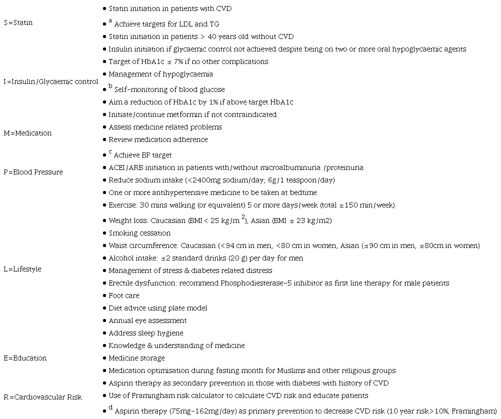Participants were required to complete a training session. The overall goal of the training was to enhance participants’ understanding of the pharmacist’s role in providing diabetes care and incorporated demonstrating how the Simpler™ tool facilitated the provision of structured diabetes care. Emphasis was placed on how the tool assisted in identifying the reasons for therapeutic failure and resolve the issues by providing evidence-based suggestions through application of a systematic approach. The training program was developed by the primary author (SA) and the overall syllabus details are presented in Table 1.