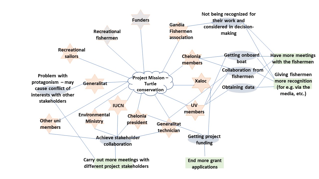 The main problem with the notion of extending the current project stakeholder management theory so to include nonhuman actors is that it can be controversial considering the fact that such actors are unable to express themselves verbally, and therefore are unable to communicate how they feel and think. It is therefore essential to find a way in the particular project studied to best represent the turtles so that their position will be taken into account. A way to do the latter may be to have a specific project stakeholder (person or group of people) to represent the Valencian marine turtles. In this respect, one might perhaps think that the scientists are the best marine turtle representatives due to all of the scientific information they possess and handle. However, couldn´t the fishermen also have this role as they spend most of their time at sea?