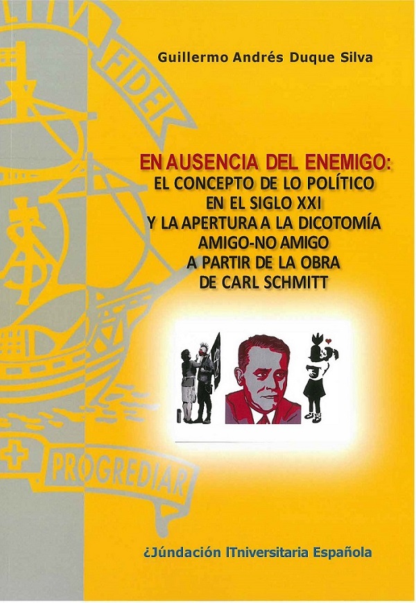 La Fundación Universitaria Española ha tenido el honor de publicar la Tesis Doctoral del investigador y profesor Guillermo Andrés Duque Silva dentro de su colección Tesis Doctorales Cum Laude. El libro que el lector tiene hoy entre sus manos En ausencia del enemigo: El concepto de lo político en el siglo XXI y la apertura a la dicotomía amigo – no amigo a partir de la obra de Carl Schmitt es una obra pertinente y necesaria, un referente para todas aquellas personas que quieren seguir profundizando en la obra del gran jurista alemán.
