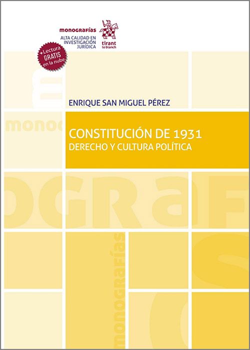 |  | SAN MIGUEL PÉREZ ENRIQUE. Constitución de 1931. Derecho y Cultura Política. Todo lo soy lo llevo conmigo. 2021. Valencia. España. TIRANT LO BLANCH. 176pp.. ISBN: 9788413975726 |