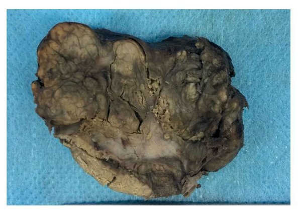 Macroscopically, classic FNH is shown as a firm mass, measuring from a few millimeters to more than 10 centimeters in diameter [17], often with a lighter color than the surrounding normal liver tissue [3,17]. The margin is well delimited, being a lobed mass17 not encapsulated [3,17]. The lesion is composed of nodules each measuring 2-3 mm, each separated by zones of atrophy that give the lesion a multinodular appearance. The lesion characteristically has a central or eccentric stellate fibrous scar [17], from which fibrous septa with an abnormal vasculature radiate towards the periphery of the lesion3 surrounding some nodules [17], but this can not always be visualized before resection [3].