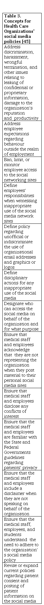 Social media undeniably pose several potential risks to health care organizations. These risks undermine the safety and security of i) patient information, ii) patient consent, iii) employment practices, iv) physician credentialing and licensure, v) the violation of HCP–patient boundaries, and vi) other ethical issues. In an attempt to avoid these pitfalls, several health care organizations and professional societies issued guidelines in the form of sound and useful principles that HCPs should follow. Notwithstanding these pitfalls, when used wisely and prudently, social media sites and platforms offer the potential to promote individual and public health, as well as professional development and advancement.