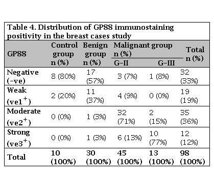 Discussion: The results of the quantitative immunostaining density of GP88 glycoprotein antibody revealed it to be a valuable predictive and therapeutic marker of GP88 in human IDC patients.