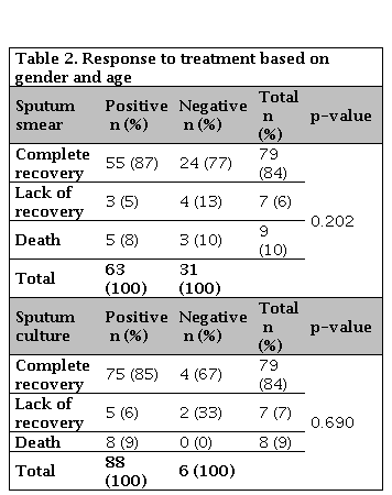 Also, there was no significant difference between smear results and sputum culture with response to treatment (Table 2).