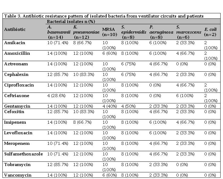 Keywords: Ventilator circuit, Bacterial colonization, Antibiotic resistance, Intensive care unit.