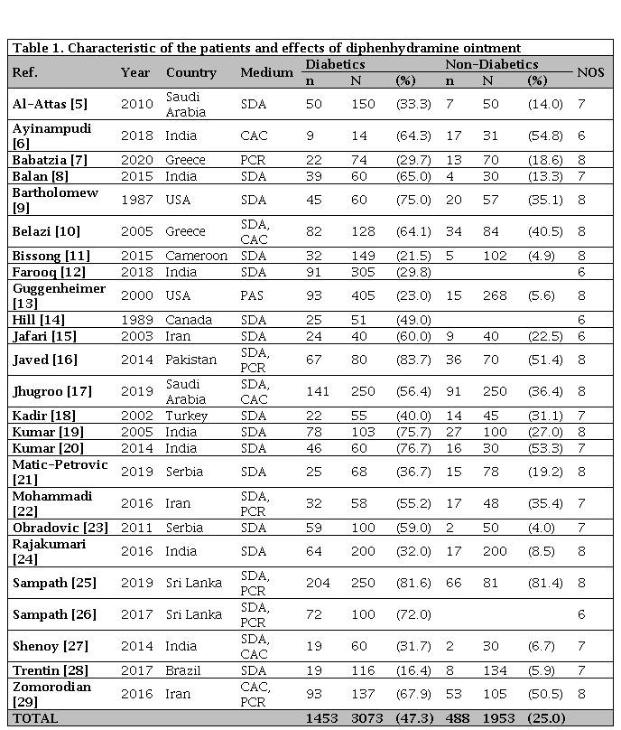 Data from twenty-five studies on oral candidiasis and Candida species detection in diabetics have been included in the present meta-analysis.