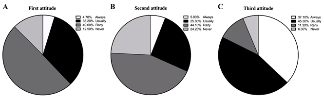 Google form, a website data collection, was used for rapid and accurate data collection and management. The website analyzed the data and displayed it as frequencies and percentages. The analyzed data were then entered into GraphPad Prism (GraphPad Prism version 9.00 for Mac, GraphPad Software, San Diego CA) for further analysis.