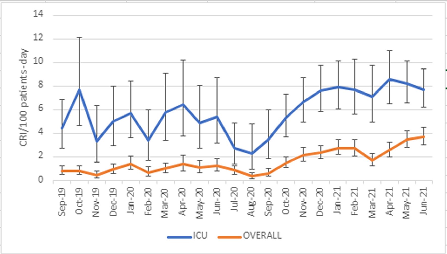 To our knowledge, to this date this is one of the few Latin-American studies on the effect of the COVID-19 pandemic on CRI incidence, reporting on over 800 CRI among over 50,000 patient-days of analysis. Indeed, we found alarming rates of CRI in our center, 2.5 times higher than before the first COVID-19 wave, similar to other reports worldwide.