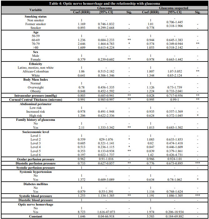 Relationship between Optic Disc Hemorrhage and Glaucoma among patients diagnosed with Systemic Hypertension and Diabetes Mellitus: The Colombian Glaucoma Study