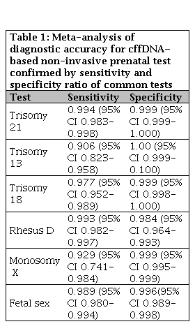 Keywords: Non-invasive prenatal tests, Cell free fetal DNA, Chromosomal microarray, Chorionic villus sampling, Maternal plasma, Fetal nucleated red blood cells, Next generation sequencing.