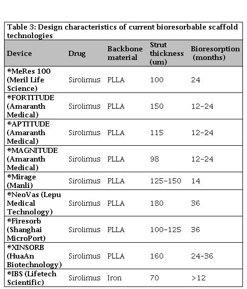 2. Jinnouchi H, Torii S, Sakamoto A, Kolodgie FD, Virmani R, Finn AV. Fully bioresorbable vascular scaffolds: lessons learned and future directions. Nat Rev Cardiol. 2019;16(5):286-304. doi: 10.1038/s41569-018-0124-7.