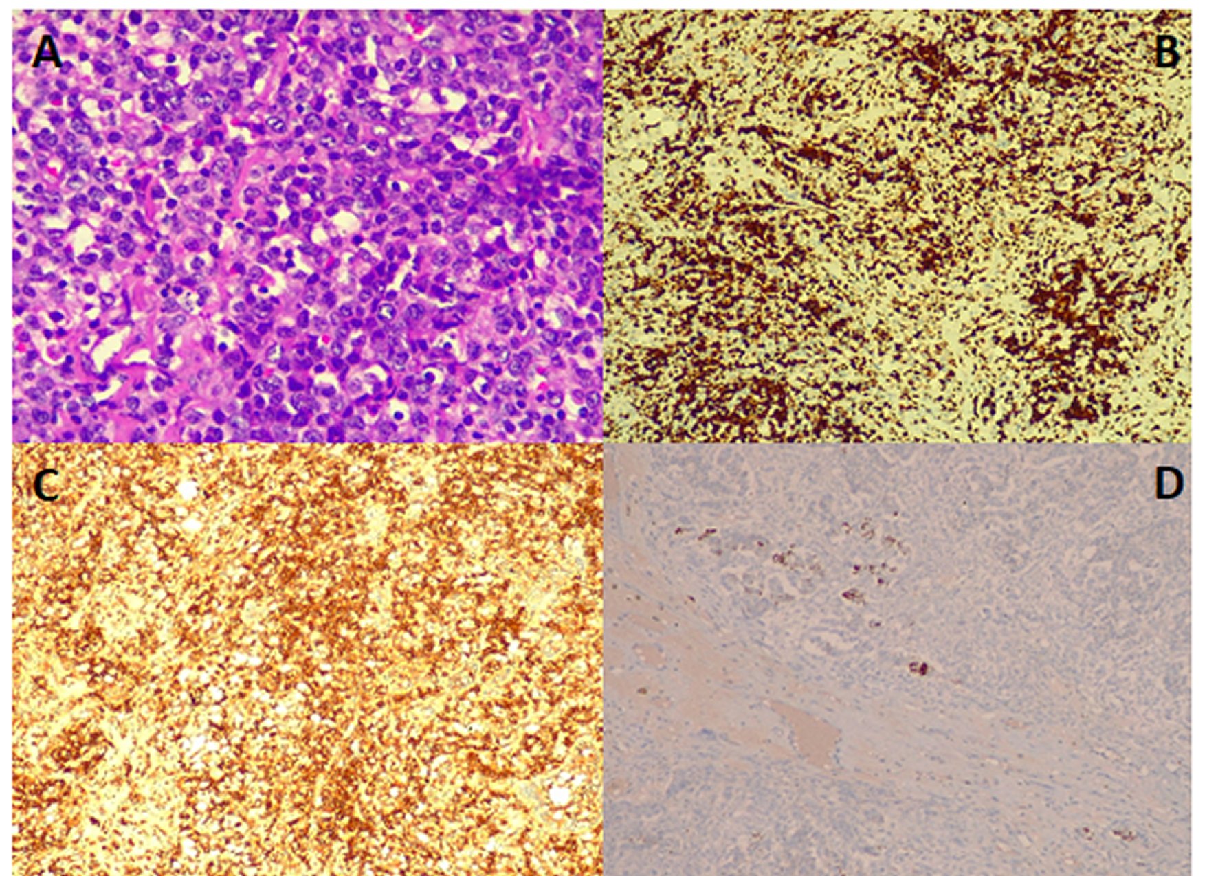 Resumen: La mama es un sitio poco frecuente de linfoma extraganglionar que representa el 2,2 % de todos los linfomas extraganglionares. Los linfomas de células B son más comunes que los tipos de células T. El subtipo más común es el linfoma difuso de células B grandes. El linfoma de mama es muy difícil de diagnosticar, ya que tiene características clínicas y radiológicas inespecíficas. Presentamos un caso raro de linfoma primario de células T en una mujer de 20 años. Fue mal diagnosticado como absceso en ultrasonido y como mastitis supurativa en citología por aspiración con aguja fina (FNAC). Sin embargo, la biopsia por escisión sugirió linfoma y la inmunohistoquímica lo confirmó como linfoma anaplásico de células grandes ALK positivo. Aunque la FNAC es parte de la tríada diagnóstica de las lesiones mamarias, no se pueden pasar por alto los peligros potenciales y se deben correlacionar con la biopsia.