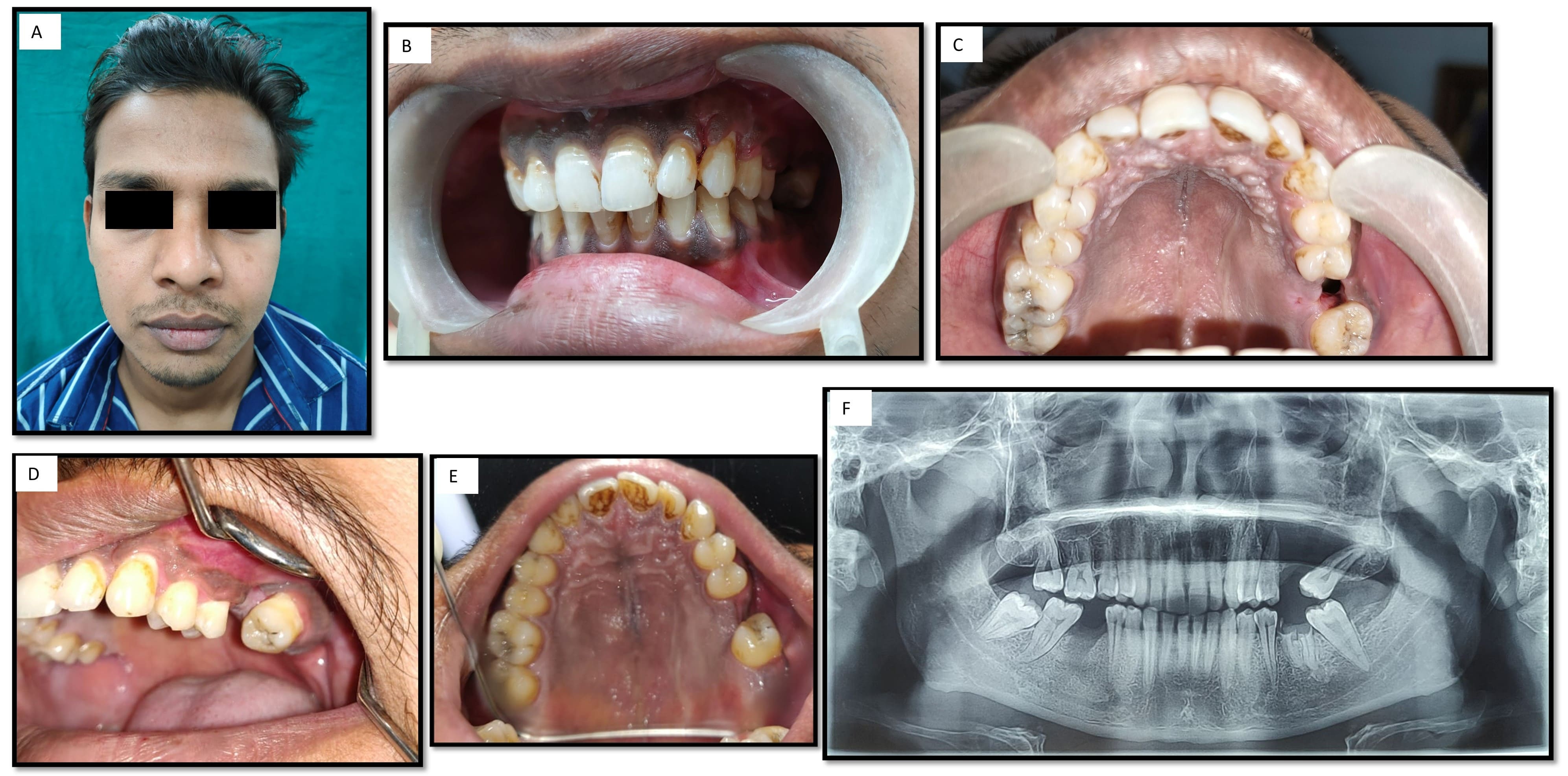 Intraorally, there was evidence of buccal & palatal expansion with obliteration of buccal vestibule with respect to 25, 26, and 27 (Figure 1B). On palpation, it was non-tender, soft to firm in consistency, and compressible.