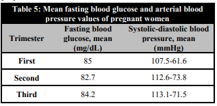 The participant's mean fasting blood glucose levels and arterial blood pressure values were given in Table 5 and mainly found within normal ranges according to AHA and ADA recommendations.