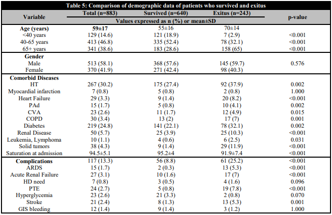 In our study, the information of 955 patients over 18 years of age who were hospitalised for more than three days in the pandemic service or intensive care units between 01-06-2020 and 28-02-2022 and who had a positive COVID-19 reverse transcription-polymerase chain reaction (COVID RT-PCR) test was scanned. 883 patients with complete information in the database were included in the study. The data of the patients included in the study were compared with those in the service and intensive care unit (ICU) group who survived and developed mortality.
