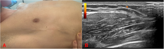 A 35-year-old male presented with a 10-day history of a tight, cord-like sensation along the right hemithorax. The patient, an active football player, had no history of fever or other infectious symptoms, though local trauma or overexertion could not be excluded as potential contributing factors.
