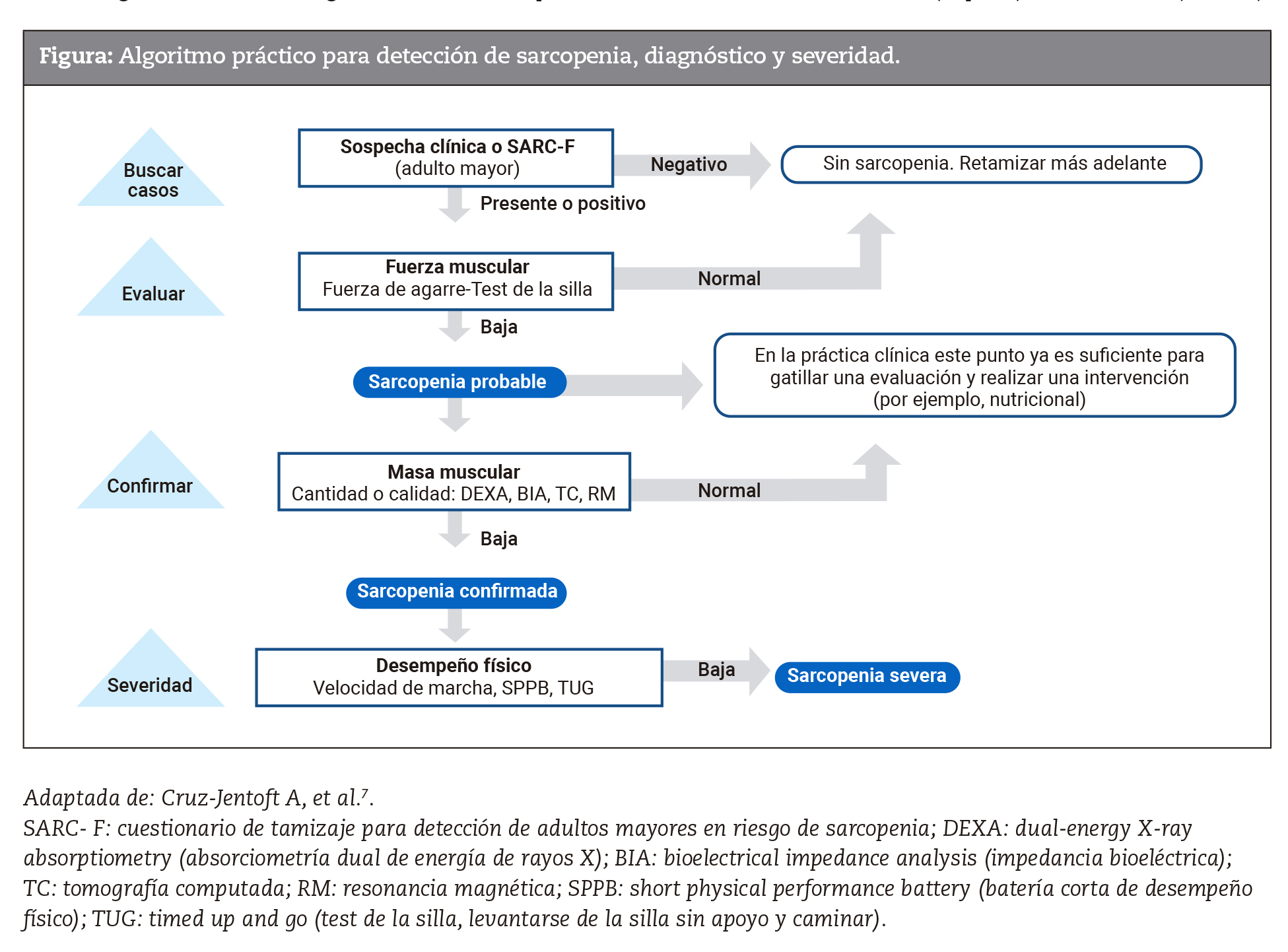 Actualmente están definidas las recomendaciones para el diagnóstico de la sarcopenia. A partir de la revisión del Consenso Europeo de 2018, se establece la pérdida de la fuerza muscular como un estado de sarcopenia probable, el cual se confirma con la certificación de baja masa muscular.