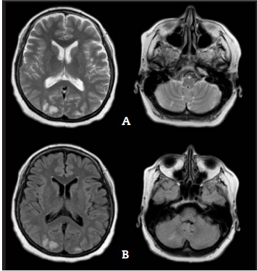 Abstract: Autoimmune encephalitis is an immune-mediated disorder that affects different areas of the brain parenchyma, often involving deep gray matter or the cortex, with or without involvement of white matter, meninges, or spinal cord. It is frequently associated with autoimmune or paraneoplastic diseases and is a diagnostic challenge. We report the case of a 55-year-old woman with history of Sjögren's syndrome who presented to the emergency department with headache and episodes of confusion. Cerebrospinal fluid (CSF) analysis showed leukocytosis with neutrophilia. Brain MRI revealed multiple restricted diffusion lesions with hyperintense signal on T2 and FLAIR sequences, predominantly in the bilateral occipital region, right cerebellar hemisphere, and right parietal region. Infections and neoplasms were ruled out. The panel of antibodies for autoimmune encephalitis, including Aquaporin-4 and anti-MOG in CSF, was negative. She received intravenous methylprednisolone, leading to symptom improvement.