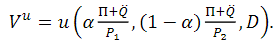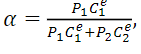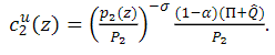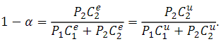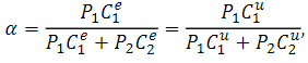 Since the utility functions u(C1e,C2e,D) and u(C1u,C2u,D) are homothetic, α is determined by the relative price