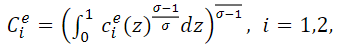 𝐶𝑒: consumption basket of an employed consumer in Period i, i = 1,2.