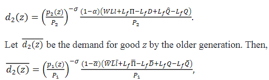 This is the sum of the demand of employed and unemployed consumers. Note that 𝑄 ̂ is the pay-as-you-go pension for younger generation consumers in their Period 2. Similarly, their is total demand for good z in Period 2 is written as