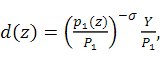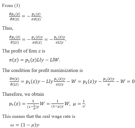 Let L and Ll be employment and the “employment × labor supply” of firm z. The output of firm z is Lly. At the equilibrium Lly = d(z). Then, we have