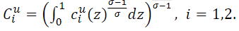 𝑐ui(𝑧): consumption of good z of an unemployed consumer in Period i, i = 1,2.