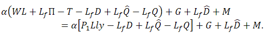 We assume a balanced budget, that is, G = T, and consider the steady state where the employment, the output, the nominal wage rate, and the prices of the goods are constant. In such a state we can assume employment, the output, the nominal wage rate, and the prices of the goods are constant.