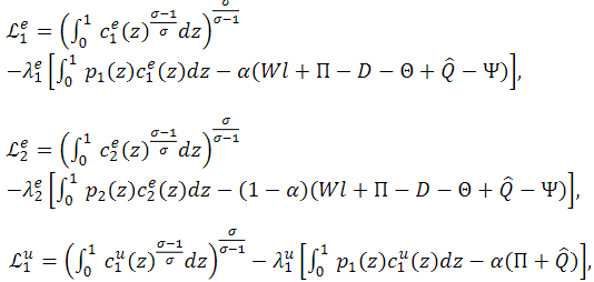 Solving maximization problems in Step 2, the following demand functions of employed and unemployed consumers are derived3