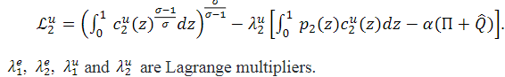 We assume that u(⋅) is a homothetic utility function. The utility function of unemployed consumers is