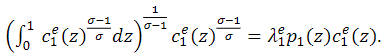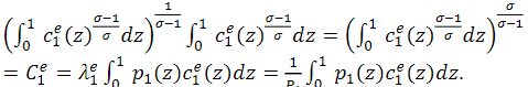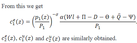 𝑐ei(𝑧): consumption of good z of an employed consumer in Period i, i = 1,2.