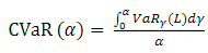 The expected shortfall, which is known as CVaR or tail risk, measures the weighted average of tail losses that are left beyond the VaR. CVaR is a coherent risk measure. P. Artzner, F. Delbaen, J. Eber and D. Heath examined the coherency of measures more deeply. According to them, the coherent risk measure has to be distinguished by the following four properties. Firstly, coherence assumes Monotonicity. A portfolio delivers the poorest result compared to another portfolio. Secondly, the translation invariance is common to a coherent risk measure. If a particular sum of funds G is added to a portfolio, its risk measure should reduce by the same amount G. The third property of coherence is Homogeneity. In case of changing the size of a basket by multiplying the amounts of all assets by λ, the risk measure is being multiplied as well by the same amount λ. The final quality of coherence is Subaddivity. While the merging of two random portfolios P1 and P2, the risk measure does not exceed the sum of risks of two portfolios P1 and P2 (1999). According to Artzner et al. (2013), Conditional Value at Risk has all four qualities. However, VaR may sometimes skip the last property, which assumes a positive effect of diversification. In order to obtain CVaR the weighted average of tail losses taking into account that the VaR threshold has been exceeded: