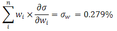 Where ∂σ/ ∂wi = (∑w)i is a marginal contribution of an investment instrument. Weighted marginal contribution wi × ∂σ/ ∂wirepresents the component contribution of an asset. In accordance with the Euler’s theorem, the sum of component contributions is equal to the total portfolio risk