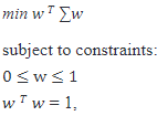 where wT represents a vector of weights, allocated to each asset in the portfolio, ∑ is the variance-covariance matrix of the asset return. By solving those problems, we can estimate the lowest possible risk within the maximum reward (Markowitz, 1952, 1959).