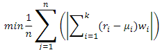Mean-Absolute Deviation (MAD) is an alternative to Mean-Variance model. MAD port- folio has a set of advantages over MV portfolio. Firstly, it does not assume the normal distribution of stock returns. Secondly, for the construction of MAD the covariance matrix is not needed. The objective of MAD is minimization of deviation, which can be expressed as LP problem, where n is the number of observations, riis a daily return of the asset i, μiis a mean daily return of the . asset, wi stands for the percentage of weight of this asset. The optimization objective has been set: