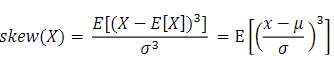 Because of the fact that variance measures the square of the fluctuations from the mean, it is not sensitive to the direction. The third statistical moment is skewness. Skewness estimates the standardized deviation, raised to the third power. It is defined as: