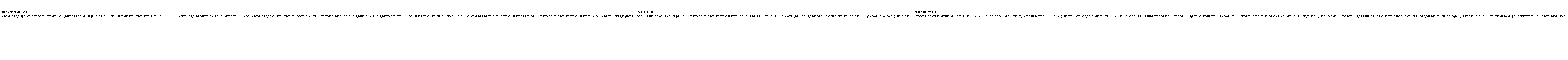 Scientific literature sources, as well as academic research projects about corporate compliance subjects such as relevant KPIs, costs and effects, value addition or ROI of compliance are rather uncommon. Therefore, one can also speak of a ‘blind spot’ or a research gap here. Some arguments are as follows: